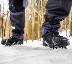 CSÚSZÁSMENTES + PÁNTOK – rugalmas cipőre húzható kiegészítők acél tüskékkel. Ideális turistáknak, erdei és hegyi túrákhoz. A karmok felhelyezésével könnyedén boldogulunk kedvezőtlen időjárási körülmények között, mint a hó és a jég. Továbbá a tépőzáras pántok megakadályozzák, hogy a hókarmok lecsússzanak a cipőről.