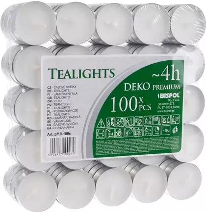 Semleges lángú teamécsesek, kb. 4 órás égési idővel – sokoldalú kiegészítő bármilyen környezetbe. Alkalmasak aromalámpákhoz, dekoratív mécsestartókhoz, valamint ételek melegen tartásához chafing edényekben. A fémkapszula biztonságos használatot nyújt, megakadályozva a viasz véletlen kiömlését.