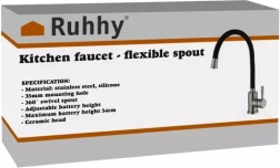 A Ruhhy rugalmas konyhai csaptelep elegáns megjelenést kombinál a praktikus funkciókkal a mindennapi használat során nyújtott maximális kényelem érdekében. 360°-ban forgatható kifolyó lehetőséget ad a vízáram irányának és magasságának egyszerű beállítására, ami megkönnyíti a nagy edények megtöltését vagy a nagyobb mosogatnivalók kényelmes mosását.