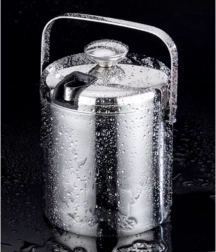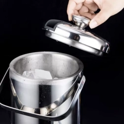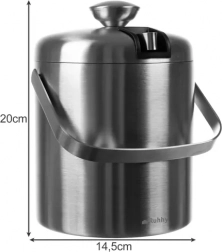 Egy ilyen rozsdamentes acél jégvödör tartozékkészlettel elengedhetetlen a hűs italok kedvelőinek. A dupla fal hosszabb ideig fagyottan tartja a jeget, 1,3 literes kapacitásának köszönhetően pedig bármilyen eseményen felszolgálhatők a jégkockák. Az ergonomikus fogantyú megkönnyíti a vödör szállítását.