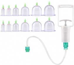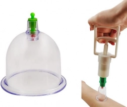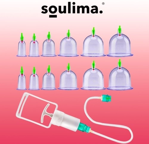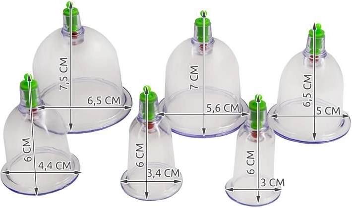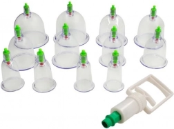 A készlet 12 átlátszó műanyag köpölyt tartalmaz szelepekkel és egy kézi vákuumpumpát, amely tűz használata nélkül hoz létre vákuumot. A köpölyök többször használhatók, könnyűek és egyszerűen tisztíthatók. Alkalmazhatók relaxációs masszázsoknál, sport utáni regenerációhoz és wellness rituálékhoz, melyek célja a mikrokeringés javítása és a izomfeszültség enyhítése.