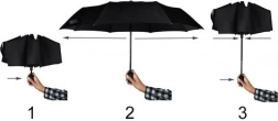 Egyetlen gombnyomással gyorsan kinyithatja és becsukhatja az esernyőt. Ideális városban és utazáskor, amikor szabad kézre és azonnali védelemre van szükség.