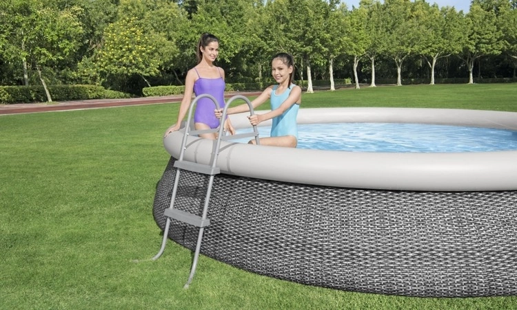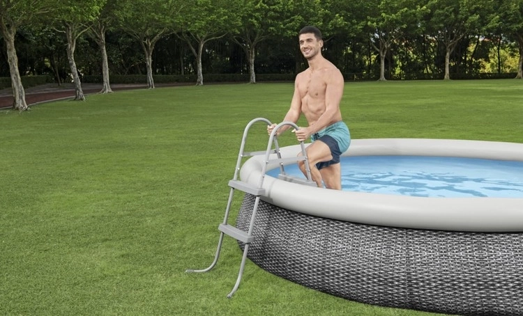 Egyszerű összeállítás bonyolult szerszámok nélkül – a létra rövid időn belül használatra kész a medencénél.