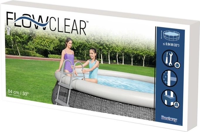 A BESTWAY Flowclear létra 84 cm falmagasságig készült medencékhez maximális biztonságot és kényelmet kínál. A stabil, korrózióálló felületkezelésű fémváz és a masszív műanyag fokok biztos lépést adnak a vízbe lépésnél és kilépésnél egyaránt. Ideális megoldás kerti medencékhez, gyermekeknek és időseknek is.