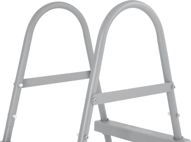 Praktikus, kétoldalas létra 84 cm falmagasságig tervezett föld feletti medencékhez, amely biztosítja a biztonságos és kényelmes be- és kilépést. Tartós fém szerkezet, csúszásgátló műanyag fokok és egyszerű összeszerelés – megbízható kiegészítő családi fürdőzéshez.