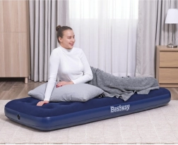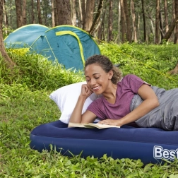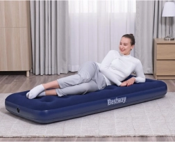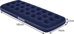 Praktikus, egyszemélyes felfújható matrac 185 × 76 × 22 cm méretben a BESTWAY márkától, ideális otthonra és utazáshoz. Kellemes tapintású velúr felülettel, tartós coil-beam szerkezettel, biztonsági szeleppel a könnyű felfújáshoz és leeresztéshez, valamint a csomagban egy öntapadós javítófolt is található.