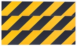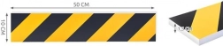 A sárga–fekete, átlós csíkok optikai figyelmeztetésként működnek, és megkönnyítik a távolság felmérését a faltól.
