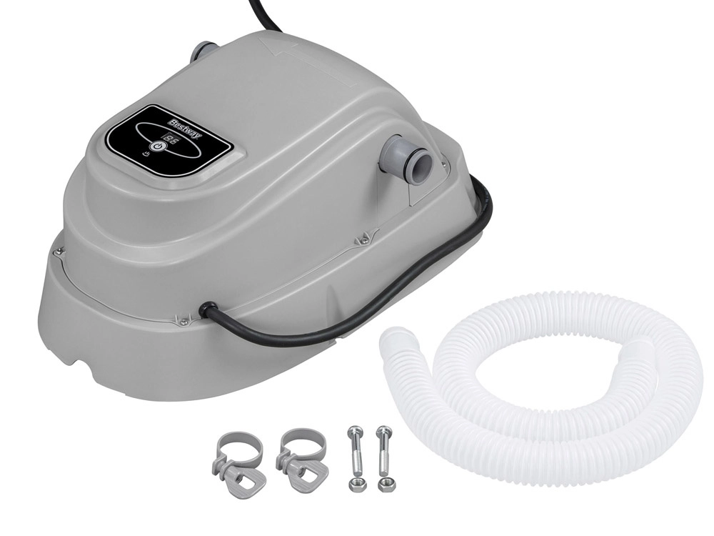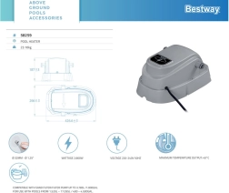 Élvezze a fürdőzést korábban és kényelmesebben a BESTWAY medencevíz-melegítővel. A készülék 2800 W nagy teljesítményt, gyors vízhőmérséklet-emelkedést és akár 20 °C-os optimális komfortot, digitális hőmérséklet-szabályozást és túlmelegedés elleni védelmet kínál. Kompatibilis akár 3785 l/ó teljesítményű szűrőszivattyúkkal, és 1520–17 035 l űrtartalmú medencékhez alkalmas.