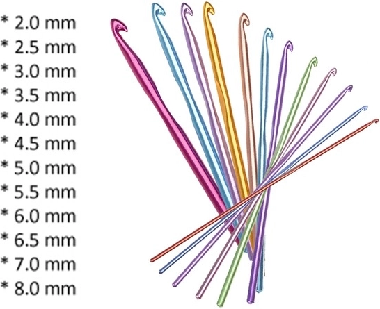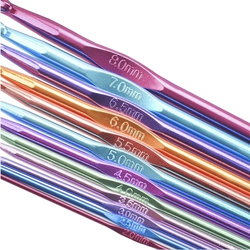 A 12 fémtűből álló készlet széles mérettartományt kínál 2,0 mm-től 8,0 mm-ig, tökéletes különböző projektekhez. A horgok ergonomikus kialakítása lapos betéttel és mély horgokkal rendelkezik, amelyek biztosítják, hogy a fonal ne csússzon le és könnyen megfogható legyen.