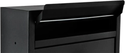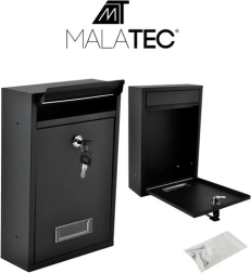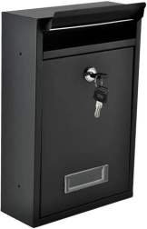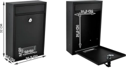Strapabíró horganyzott acélból készült postaláda elegáns fekete színben, amely biztonságos tárolást nyújt a leveleknek. Fedett bedobónyílással az eső ellen, zárható ajtóval és 2 kulccsal, címtáblával, valamint könnyű szerelésre előkészítve, tiplikkel és távtartókkal együtt.