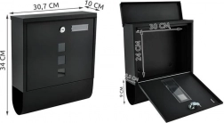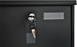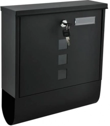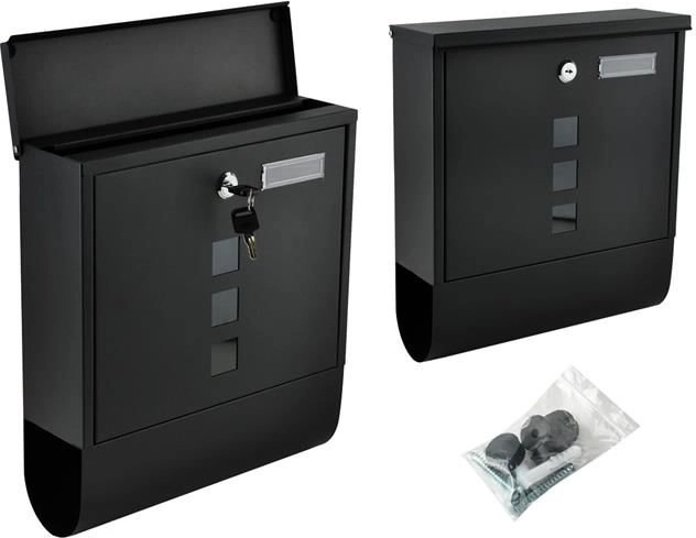 Elegáns, fekete levélszekrény tartós, galvanikusan horganyzott fémből a postája biztonságos kézbesítéséhez. Fedett bedobónyílással A4 formátumhoz, zárható ajtóval 2 kulccsal és praktikus újság- és szórólaptartóval. Masszív felépítés időjárás elleni védelemmel és szellőzőnyílásokkal, hogy a küldemények szárazak maradjanak, a szerelés pedig egyszerű a mellékelt tartozékoknak köszönhetően.
