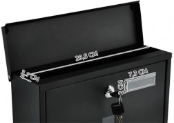 Megbízható levélszekrény házhoz vagy nyaralóhoz. A fedett bedobónyílás megóvja a küldeményeket az esőtől és a nedvességtől, és gond nélkül befogadja az A4 formátumú leveleket is. A zárható előlapi ajtó és a mellékelt két kulcs gondoskodik a magánszféráról és a biztonságról.