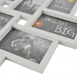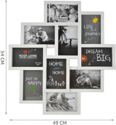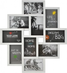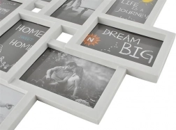 Készítsen egyedi galériát otthon vagy az irodában. A keret akár 10 fotót is befogad (kívülről látható méret kb. 9×14 cm), és az okosan összekapcsolt szerkezetnek köszönhetően helyet takarít meg, amelyet tíz különálló képkeret foglalna el. A fehér, minimalista dizájn bármely enteriőrbe illik, és kiemeli kedvenc felvételeit.