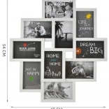 Stílusos keret 10 darab, legfeljebb 10×15 cm-es fotóhoz, amely praktikus megoldást kínál az emlékek egy helyen történő rendezésére. Értékelni fogja az attraktív kollázshatást, a biztonságos, üveg nélküli kivitelt és az egyszerű szerelést falra akasztással vagy falnak támasztva.