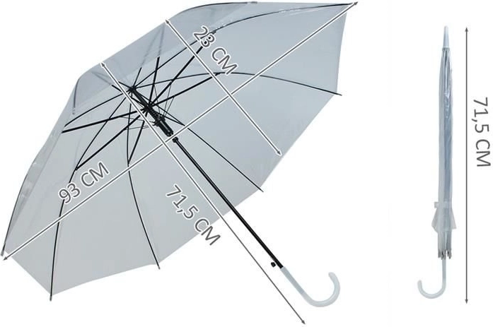 Az átlátszó PVC kupola lehetővé teszi az út biztonságos figyelését még erősebb esőben is, amikor az esernyőt szögben kell tartani. Az esernyő egyben stílusos kiegészítő elegáns öltözékekhez, beleértve az esküvői vagy alkalmi ruhákat is.