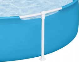 A medence stabil, fém vázzal rendelkezik, amely megfelelő szilárdságot és tartósságot ad az egész szerkezetnek. A falak háromrétegű anyagból készülnek – strapabíró poliészter és PVC kombinációjából –, amely véd a sérülésekkel szemben.