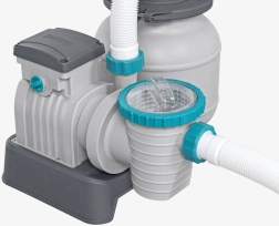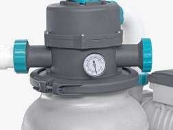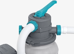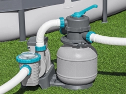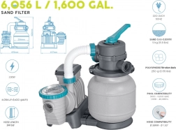 A szivattyú 6056 l/óra kapacitással gyorsan eltávolítja a szennyeződéseket a medencéből. Szűrőközeget kell használni - akár kvarc homok (0,45-0,85 mm), akár hatékony POLYSPHERE szűrőgolyók.