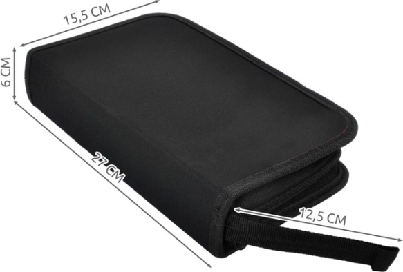 - Praktikus tárolás: a készlet egy elegáns tárolótáskában kapott helyet, mely megkönnyíti az eszközök tárolását és szállítását, biztosítva, hogy semmi ne vesszen el.