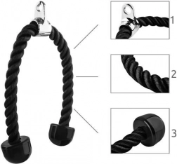 A mi tricepsz kötelünk ideális a váll, mellkas, hát, tricepsz és hasizom edzésére különféle gyakorlatokkal. A sűrűn szőtt nejlonszálaknak köszönhetően a maximális teherbírás elérheti a 200 kg-ot, ami garantálja a tartósságot és hosszú élettartamot.