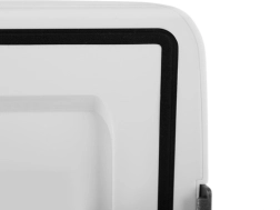 A hűtő kettős tápellátást támogat – 220–240 V hálózatról és 12 V autós csatlakozóról (mindkét kábel a csomagban). Az alacsony zajszint kényelmes működést biztosít, míg a reteszelős fogantyú megakadályozza az ajtó véletlen kinyílását szállítás közben. Az üzemmódok a hátoldali kapcsolóval, visszajelzővel válthatók.