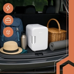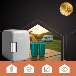 Kompakt, 4 literes utazó mini hűtő, hűtés és melegítés funkcióval – ideális utazáshoz, autóba, irodába vagy nyaralóba. 230 V és 12 V táplálás, alacsony zajszint, valamint praktikus belső elrendezés polccal és ajtózsebbel. Hűtés 18–22 °C-kal a környezeti hőmérséklet alá, melegítés üzemmódban 55–65 °C fenntartása.