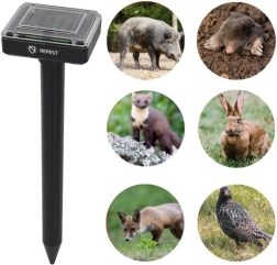 A REPEST napelemes riasztó éjjel-nappal, folyamatosan működik – nappal töltődik, éjszaka és felhős időben az akkumulátorról üzemel. A 400–1000 Hz közötti változó frekvencia és az időszakos rezgések hatékonyan zavarják a vakondok, mezei pockok, egerek és ürgék komfortját, így elhagyják a területet. A telepítés egyszerű: szúrja a tüskét a talajba, és hagyja, hogy a nap végezze a munkát.
