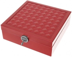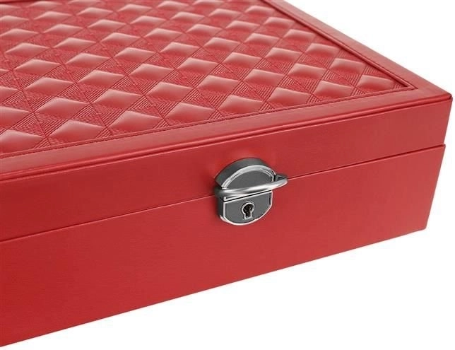 Tárolja ékszereit stílusosan és átláthatóan ezzel az elegáns bordó klenotdobozzal. A többszintű rekeszeknek köszönhetően könnyen elválaszthatók a gyűrűk, fülbevalók, karkötők és órák. A klenotdoboz PU bőrből és MDF lemezből készült, ami tartósságot és stílusos megjelenést kölcsönöz neki.