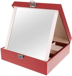 A fedél belsejében található tükör praktikus a szerszámok felhelyezésére vagy a megjelenés bármikori korrekciójára.