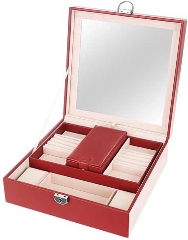 Az eltávolítható utazódoboz lehetővé teszi, hogy kedvenc ékszereidet magaddal vidd az utakra, anélkül, hogy az egész klenotládát be kellene csomagolnod. A fedél belsejében lévő tükör kényelmet biztosít ékszerek felhelyezésekor vagy sminkeléskor.