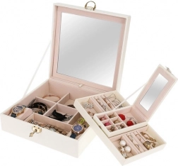 A tükör a belsejében megkönnyíti az ékszerek felhelyezését vagy a smink készítését. A tükör alatti tárolóhely alkalmas a legértékesebb darabok tárolására.