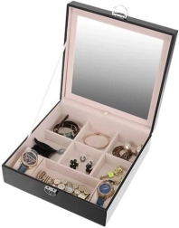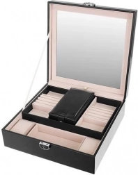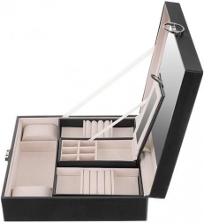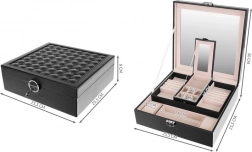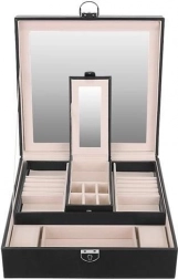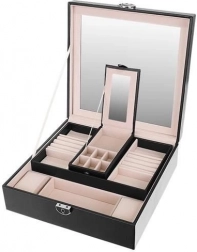 Ez az ékszerdoboz nagyszerű minden ékszer- és divatkiegészítő szerelmesének. Számos tároló szinttel rendelkezik, beleértve kivehető utazási dobozt is, amely sokoldalúságot és praktikusságot nyújt, amelyet az utazások során értékelni fog. A fedélbe épített tükör megkönnyíti az ékszerek felhelyezését és igazítását.
