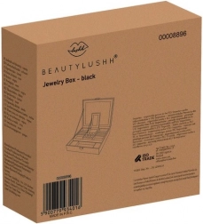 Elegáns Beautylushh ékszerdoboz fekete színben, ideális értéktárgyai rendezésére és védelmére. Többszintű tárolóhellyel és tükörrel mindent kínál, amire szüksége van az ékszerek áttekinthető tárolásához.