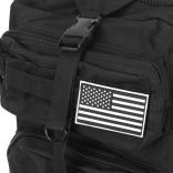 Sokoldalú fekete taktikai hátizsák 38L kapacitással ideális kültéri tevékenységekhez és mindennapi használatra. Tartós, vízálló anyagból készült, sok zsebet és rendszert kínál a kényelem és funkcionalitás növelése érdekében.
