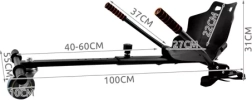 A masszív, fém és tartós anyagokból készült váz biztonságos, hosszú élettartamra készült. A fokozatmentes 40–60 cm-es hosszállítás pontosan a vezető testalkatához igazítható, míg a forgó első kerék sima manőverezhetőséget biztosít. Az összeszerelés gyors és szerszámmentes – a nagy szilárdságú bilincsekkel és állítható tépőzáras pántokkal a kiegészítőt könnyen rögzítheted különféle hoverboard típusokra.