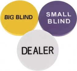 A DEALER, SMALL BLIND és BIG BLIND zsetonok átlátható köröket és gördülékeny játékmenetet biztosítanak.