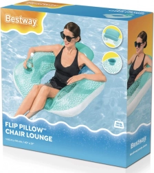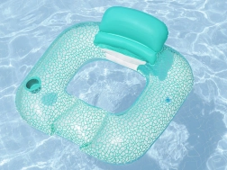 A szék formájú felfújható matrac a kényelmet és a praktikumot ötvözi a vízparti lazításhoz. Az ergonomikus háttámla megtámasztja a hátat, míg a pohár- vagy palacktartó mindig kéznél tartja kedvenc italát. A stílusos türkiz–fehér mozaikos dizájn minden vízfelületen remekül mutat.