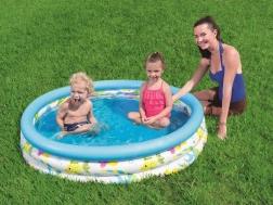 A könnyű és biztonságos BESTWAY felfújható medence ideális a kisgyermekek számára forró napokon a kertben vagy nyaraláskor. 140 literes kapacitást, háromkamrás kialakítást a stabilitásért és tartós PVC anyagot kínál. A színes, tengeri állatkás minta és a biztonsági szelep gondtalan, vidám felfrissülést garantál.