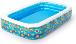 A BESTWAY családi medence vonzó, virágmintás nyomattal nyári oázissá varázsolja kertjét. Könnyen felfújható, gyorsan feltölthető, és pillanatok alatt készen áll a játékra és a pihenésre. A masszív, 0,32 mm vastag PVC szerkezet ellenáll a nyári mókának, miközben megőrzi a kényelmes komfortot.