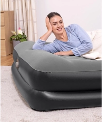 Élvezze a nyugodt alvást a 46 cm-es megemelt magasságnak köszönhetően, amely megkönnyíti a felkelést, valamint a strapabíró Tritech™ belső szerkezetnek. A beépített 220–240 V-os elektromos pumpa gyorsan felfújja és leereszti a matracot, a biztonsági szelep pedig felgyorsítja a levegő kiengedését. A velúr felület kellemes tapintású és kopásálló.
