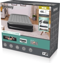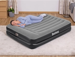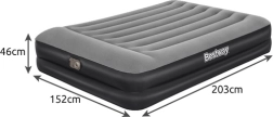 Kényelmes, kétszemélyes BESTWAY felfújható matrac 203 × 152 × 46 cm méretben, beépített elektromos pumpával, integrált párnával és selymesen puha velúr felülettel. A tartós I-Beam/Tritech™ szerkezet stabilitást, hosszú élettartamot és kényelmes alvást biztosít otthon és útközben egyaránt.