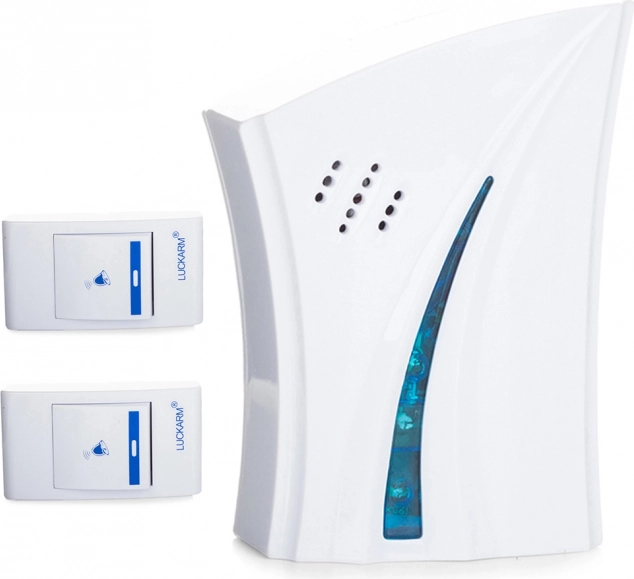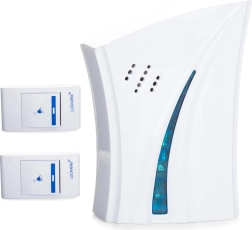 Vezeték nélküli csengő, ideális otthoni használatra. Két távirányítót és egy csengő egységet tartalmaz, amelynek hatótávolsága akár 150 méter is lehet.