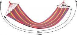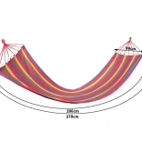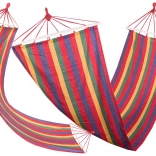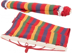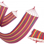 Élvezze a pihenést a szabadban ezzel a csíkos, fa merevítőkkel ellátott függőággyal. 200 × 80 cm-es tágas fekvőfelületet, a merevítőrudaknak köszönhetően stabil elrendezést és akár 150 kg teherbírást kínál. A strapabíró pamut–poliészter kevertszövet légáteresztő, kellemes tapintású és könnyen tisztítható. A gyors összeszerelés, a kis tömeg és a stílusos, sokszínű csíkos design ideálissá teszi kertbe, teraszra, erkélyre és kempingezéshez is.