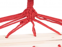 A csomag két rögzítőkötéllel érkezik. A függőágyat könnyedén felakaszthatja fák közé vagy állványra, és összehajtva minimális helyet foglal.