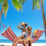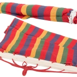 Ez a kényelmes függőágy fa merevítőrudakkal folyamatosan nyitva tartja a fekvőfelületet, így a be- és kiszállás egyszerű. A vastag pamut poliészter keverékkel készült erős szövet tartós, légáteresztő és kellemes a mindennapi pihenéshez. 150 kg teherbírásának köszönhetően biztos tartást és stabilitást nyújt kültéren és beltéren egyaránt.