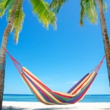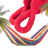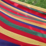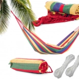 Ez a csíkos függőágy azonnali nyugalmat és kényelmet hoz a kertbe vagy az erkélyre. A tartós, légáteresztő textil és a erős, fonott kötelek biztonságos és kellemes ringatózást biztosítanak egy vagy két személy számára. Feltekerve minimális helyet foglal, és a mellékelt zsinóroknak köszönhetően könnyedén felakasztható fák közé vagy állványra.