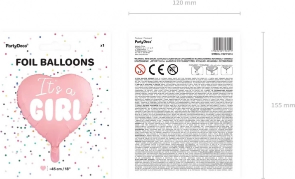 Fólia lufi It's a Girl rózsaszín szív 45 cm
