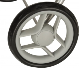 A gumírozott kerekek nem karcolják a padlót, így a babakocsi alkalmas kültéri és beltéri használatra is.