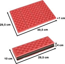 Élvezze a kényelmet bárhol a szabadban. Ez az összecsukható hab ülőalátét ideális túrázáshoz, kempingezéshez, parkba és a strandra. A profilozott felület kellemes ülést biztosít, tompítja az egyenetlenségeket, és kiválóan szigetel a hideg, nedves aljzattól.