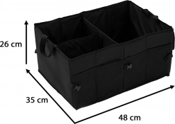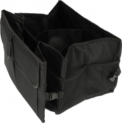Strapabíró poliészterből készült, amely jól bírja a mindennapos használatot. A oldalsó csatok lehetővé teszik a szélesség beállítását vagy a forma gyors rögzítését. A masszív fogantyúknak köszönhetően a rendezőt az áruval együtt könnyen áthelyezheti közvetlenül a csomagtartóból a lakásba.