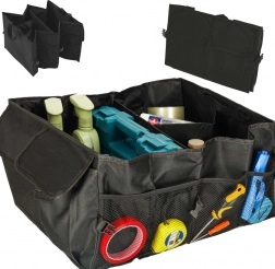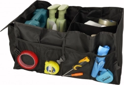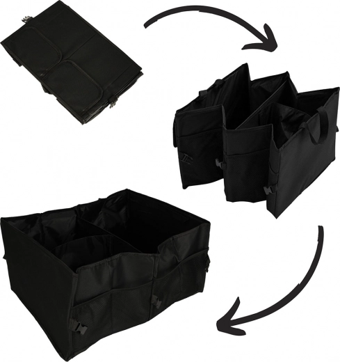 Tartsa rendben a csomagtartót erőfeszítés nélkül. Ez a tágas, összecsukható, strapabíró poliészterből készült rendező három fő rekeszt, oldalsó, fedéllel ellátott zsebeket és négy hálós zsebecskét kínál az apróságoknak. A masszív kialakításnak, a praktikus fogantyúknak és a gyors, laposra hajtható megoldásnak köszönhetően ideális bevásárláshoz, szerszámokhoz és autóápoláshoz is.